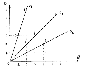 Рис. 2.15. Кривые предложения с единичной ценовой эластичностью.