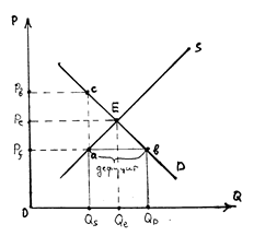 При введении нижней границы цены выше цены равновесия продавец всегда будет стремиться расширить рынок сбыта за счет нарушения установленных правил. По своим последствиям субсидирование через минимальные цены во многом совпадает с перечисленными выше последствиями субсидирования через прямые выплаты продавцу за каждую единицу товара. В частности, наблюдается перепроизводство товара по сравнению с рыночным равновесием (Q S > Q D) и появляются чистые потери общества (bEc).