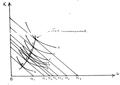 Путь расширения - это линия, соединяющая наименее затратные комбинации ресурсов по мере увеличения выпуска.