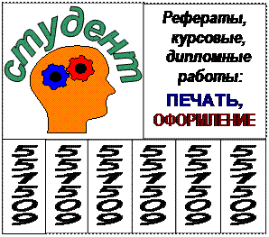 7) Создайте текстовое поле №4 и наберите в нем текст объявления "Рефераты, курсовые, дипломные работы: ПЕЧАТЬ, ОФОРМЛЕНИЕ". Выделите и отформатируйте текст по размеру поля №4 шрифтом Arial Narrow, кегль16, полужирный, расположение по ширине, цвета тёмнокрасный, тёмносиний и автоцвет (чёрный).