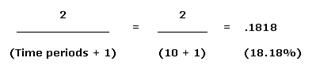 Это означает, что EMA с 10 периодами эквивалентна 18.18 % EMA.