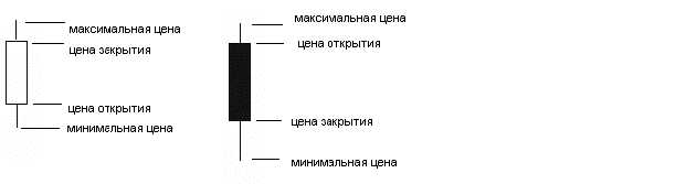 Расстояние между открытием и закрытием торговой сессии образует тело свечи. В зависимости от соотношения цены открытия и цены закрытия, тело свечи окрашивается в определенный цвет — в темный, если цена к закрытию упала, и в светлый, если цена поднялась. Часто встречающиеся цветовые комбнации: