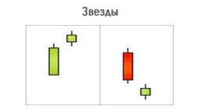 Звезда (star) — маленькое тело (т. е. волчок), образующее разрыв относительно предшествующего длинного тела. Звезда указывает на ослабление предшествующей ей тенденции. Иногда звезду, возникающую вслед за длинной красной свечой при нисходящей тенденции, называют «каплей дождя».