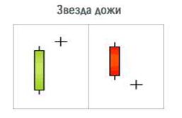Звезда дожи (dojistar) — дожи, образующий разрыв относительно длинной белой или черной свечи. Является важной моделью разворота при наличии подтверждающего сигнала в течение следующей сессии.