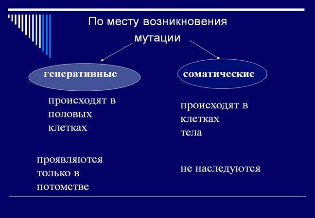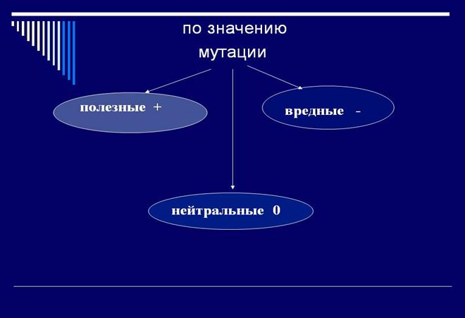 При существенном изменении условий существования те мутации, которые раньше были вредными, могут оказаться полезными. Таким образом, мутации являются материалом для естественного отбора. Так, мутанты-меланисты (темноокрашенные особи) в популяциях березовой пяденицы в Англии впервые были обнаружены учеными среди типичных светлых особей в середине XIX века. Темная окраска возникает в результате мутации одного гена. Бабочки проводят день на стволах и ветвях деревьев, обычно покрытых лишайниками, на фоне которых светлая окраска является маскирующей. В результате промышленной революции, сопровождающейся загрязнением атмосферы, лишайники погибли, а светлые стволы берез покрылись копотью. В результате к середине XX века (за 50-100 поколений) в промышленных районах темная морфа почти полностью вытеснила светлую. Было показано, что главная причина преимущественного выживания чёрной формы — хищничество птиц, которые избирательно выедали светлых бабочек в загрязненных районах.