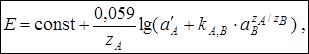 за счёт которой мешающие ионы В проникают в мембрану. В этом случае потенциал ИСЭ описывается уравнением Никольского (модифицированное уравнение Нернста):