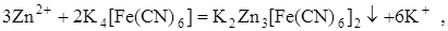 Кроме того, при проведении осадительного титрования можно воспользоваться инертным платиновым электродом, если искусственно создать в растворе окислительно-восстановительную пару. Например, при титровании раствора Zn2+ раствором K4[Fe(CN)6] протекает реакция осаждения: