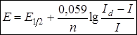 Зависимость между приложенным напряжением и силой тока в любой точке волны описывается уравнением Гейровского-Ильковича: