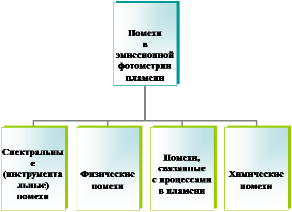 В методе эмиссионной фотометрии пламени на величину аналитического сигнала влияет большое количество разнообразных факторов, в результате чего возникают различные помехи (рис. 39).