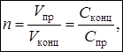 1. Абсолютное: микрокомпонент переводят из большого объёма или большой массы пробы (V пр или m пр) в меньший объём или меньшую массу концентрата (V конц или m конц). В результате концентрация микрокомпонента увеличивается в n раз: