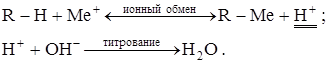 и др. Определение «неудобных» катионов основано на предварительном пропускании пробы через колонку с катионитом в водородной форме и последующем титровании выделившейся кислоты щёлочью: