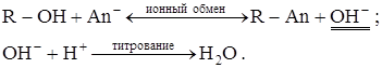 Определение «неудобных» анионов основано на предварительном пропускании пробы через колонку с анионитом в гидроксидной форме и последующем титровании выделившейся щёлочи кислотой: