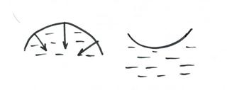 4. Когда жидкость граничит с поверхностью твёрдого тела, мы должны обратить внимание на то, смачивает или не смачивает жидкость данное твёрдое тело. Когда смачивает – жидкость будет растекаться по поверхности. Когда не смачивает – будет сворачиваться в каплю. При смачивании жидкость старается увеличивать площадь границ соприкосновения с твёрдым телом, а при не смачивании – уменьшить.