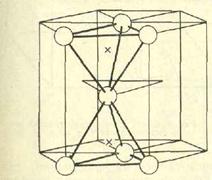 В центре грани должен находиться атом, а межузельный атом вытесняет его и образуется пара межузельных атомов, которая называется гантелью.