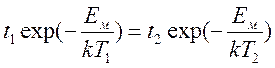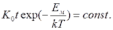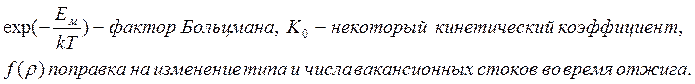 . Если за снижение электросопротивления ответственен единственный термоактивированный процесс с постоянной энергией активации, которую можно принять за энергию активации миграции вакансий Ем, то скорость падения электросопротивления:
