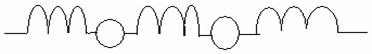 через силовую постоянную, характеризующую смещение атомов в кристаллической решетки. В этих целях линейную цепочку атомов представим в виде связанных упругими пружинами: