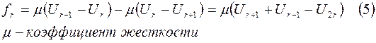 В этой модели возникающая при растяжение и сжатие пружин возвращающая сила, действующая на атом линейно, зависит от расстояния до ближайших атомов. Действительно в большинстве твердых тел в случае малых деформаций выполняется закон Гука, тогда выражение для возвращающей силы будет иметь вид: