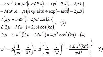 Он отличается от рассмотренного нами ранее кристалла только тем, что в нем чередуются атомы с массами M и m (M>m).