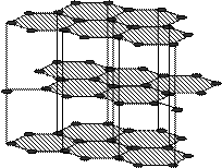 Рассмотрим углерод: он существует в форме алмаза (рис 1.10) и графита (рис. 1.11). В обычных условиях графит более устойчив, чем алмаз, хотя разница в энергии модификации не велика ΔU= - 1,86 Дж/моль