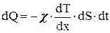 где dQ – количество теплоты, переносимое за время dt через площадку dS в направлении нормали х к этой площадке в сторону убывания температуры;