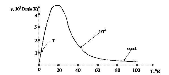 В области низких температур, близких к абсолютному нулю, в достаточно чистых кристаллах проявляется зависимость