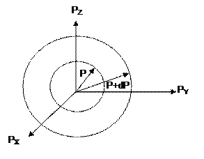 Определим число состояний, которым обладает микрочастица в интервале энергий (E; E+dE), для чего проведем в пространстве импульсов две сферы с радиусами P и P+dP (рис. 3.1).