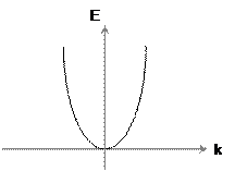 Из формул (4.5) и (4.2) видно, что для свободных электронов закон дисперсии имеет квадратичный характер и для одномерного движения выражается параболой (рис 4.4).