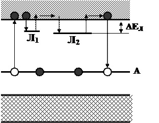 Для возникновения длительного свечения, характерного для фосфоресценции, люминофор должен содержать не только активатор A, но и ловушки Л для электронов, располагающиеся вблизи дна зоны проводимости (рис. 4.26).