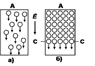 Представим, что на поверхности воды, налитой в плоский горизонтальный сосуд A, плавают заряженные частицы-шарики, которые в отсутствие внешнего поля совершают беспорядочные движения с различными скоростями.