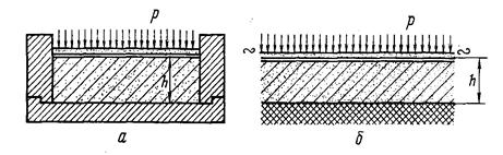 а) – в компрессионном приборе; б) - при сплошной нагрузке.
