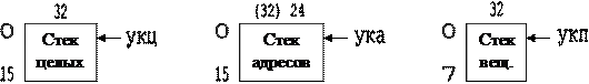 - стек адресов (каждый элемент указывает на произвольную ячейку памяти);