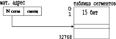 ПА – по физическому адресу находит математический. Можно просто бежать по всем сегментам и искать, в какой попадает данный физический адрес (чтобы найти № сегмента). В "Самсоне": есть ещё один стек, параллельный стеку адресов (16 записей по 16 бит), в который записывается N сегмента. Тогда команда ПА по номеру сегмента в таблице сегментов находит адрес начала сегмента, вычитает его из физического адреса и получает смещение.