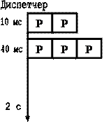 Управление передаётся диспетчеру, который даёт поработать P1, P2 (они такие, что отработают быстро), потом поработают P3, P4, P5, потом снова P1, P2.