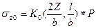 szс – напряжение в любой точек, лежащей на вертикали под углом загруженного прямоугольника со сторонами l и b.