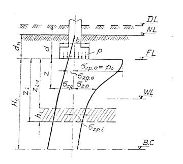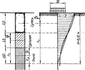 Рис. 12.3 Иллюстрация расчета осадок фундамента
