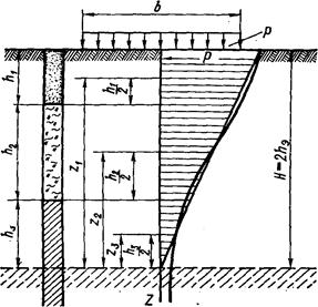 n - количество слоев, различающихся по сжимаемости в пределах упругого слоя Н;