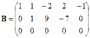 , которая эквивалентна матрице А, так как получена из нее с помощью конечного множества элементарных преобразований. Очевидно, что ранг матрицы В равен 2, а следовательно, и r (A)=2. Матрицу В легко привести к канонической. Вычитая первый столбец, умноженный на подходящие числа, из всех последующих, обратим в нуль все элементы первой строки, кроме первого, причем элементы остальных строк не изменяются. Затем, вычитая второй столбец, умноженный на подходящие числа, из всех последующих, обратим в нуль все элементы второй строки, кроме второго, и получим каноническую матрицу:
