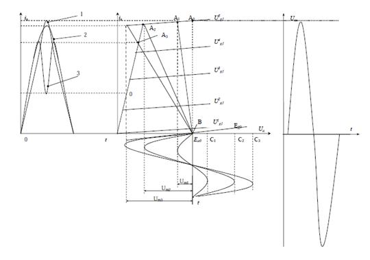 Динамическая характеристика АЭ представляет собой геометрическое место точек, нанесённых на семействе статистических характеристик АЭ, каждая из которых отображает соотношение между токами и напряжениями в каждый момент времени в течение периода Т действия входного сигнала. При подаче входного сигнала рабочая точка будет изменять свое положение, перемещаясь по ломаной линии А1ВС1.
