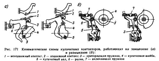 Кулачковые контакторы выполняют как с дугогашением, так и без него (рис. 172).