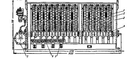 /—контакторный элемент; 2—перегородка; 3— рама; 4 —кулачковый вал; 5 — пальцы контактные; б — блокировочный барабан; 7 —привод пневматический.