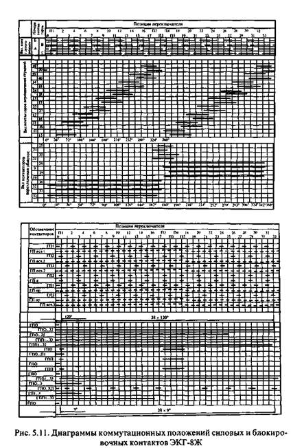 Коммутационные положения всех контактов главного контроллера в зависимости от позиции приводятся на диаграмме (рис. 5.11).
