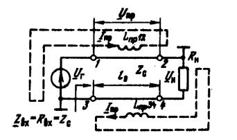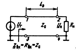 Двухпроводная линия соединяет генератор Ur и нагрузочное сопротивление RH. За счет сильной электромагнитной связи между проводами линии при Zc = RH, если потерями в линии пренебречь, в любом ее сечении, в том числе и между выходными точками 2 — 4, наводится ЭДС, равная Ur.