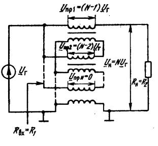 а фазовый сдвиг будет такой же, как в предыдущих схемах. Следовательно коэффициент трансформации сопротивлений оказывается дискретным: