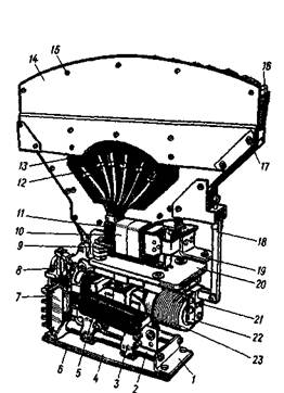 Блокировочное устройство 7 имеет основание, выполненное из изоляционного материала; оно прикреплено болтами к угольникам. На основании укреплены держатели с контактными пластинами, к которым подведены провода цепи управления. Подвижная система блокировочного устройства состоит из стержня 8, на котором смонтированы блокировочные контакты.