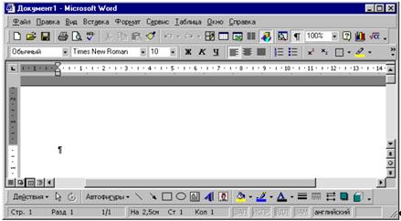 Строка состояния (статуса) содержит имя редактируемого документа и определяет текущее положение курсора в этом документе. В строке выводится справочная информация.