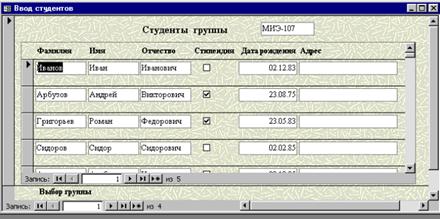Формы. Это средства для ввода и просмотра данных. С помощью форм можно закрыть некоторые поля для несанкционированного ввода, можно разместить специальные элементы управления (счетчики, раскрывающиеся списки, переключатели, флажки и пр.) для автоматизации ввода. Можно представить форму с помощью графических средств, в виде бланка, если ввод производится со специальных бланков.