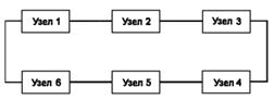 Кольцевая топология предусматривает соединение узлов сети замкнутой кривой – кабелем передающей среды. Выход одного узла сети соединяется со входом другого. Информация по кольцу передается от узла к узлу. Каждый промежуточный узел между передатчиком и приемником ретранслирует посланное сообщение. Принимающий узел распознает и получает только адресованные ему сообщения.