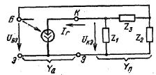 .Входное сопротивление транзистора будем считать большим по сравнению с | Z2(w) |, т.е. моделью транзистора считаем генератор тока, управляемого напряжением.