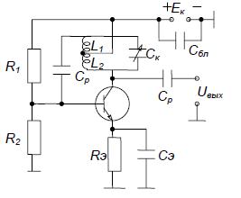 Транзисторный диапазонный автогенератор собран по трёхточечной схеме с автотрансформаторной ОС, с комбинированным напряжением