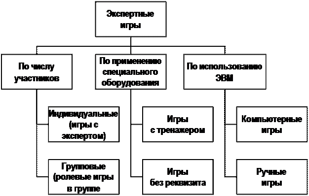 В настоящее время в психолого-педагогических науках нет развитой теоретической концепции деловых игр и других игровых методов обучения. Тем не менее, на практике эти игры широко используются. Под деловой игрой чаще всего понимают эксперимент, где участникам предлагается производственная ситуация, а они на основе своего жизненного опыта, своих общих и специальных знаний и представлений принимают решения. Решения анализируются, и вскрываются закономерности мышления участников эксперимента. Именно эта анализирующая часть деловой игры полезна для получения знаний. И если участниками такой игры становятся эксперты, то игра из деловой превращается в экспертную. Из трех основных типов деловых игр (учебных, планово-производственных и исследовательских) к экспертам ближе всего исследовательские, которые используются для анализа систем, проверки правил принятия решений.